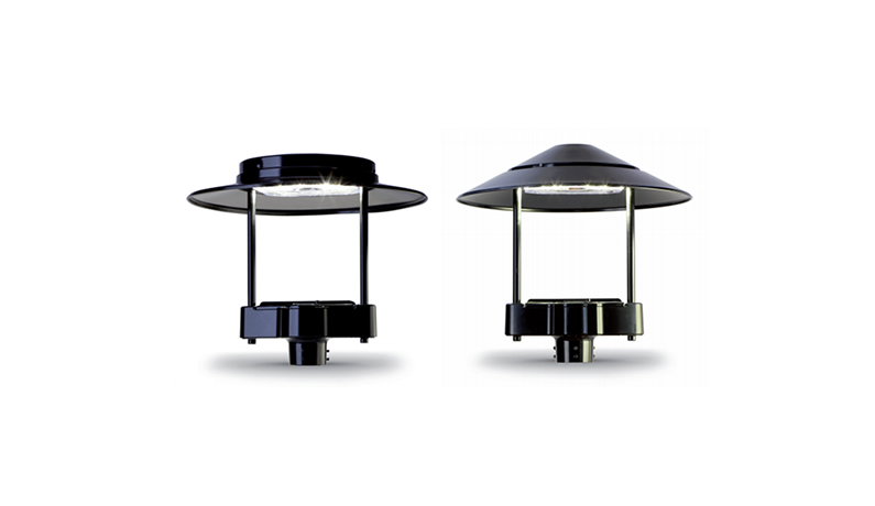 Nueva luminaria Evolve LED, luminaria punta de poste contemporánea de soporte dual,